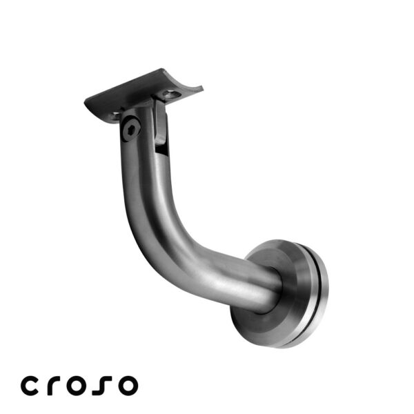 V2A, geschliffen, zur Montage an Glas, mit Gelenk, mit längerem Gewindestift dickere Platten-/ Wandstärken möglich